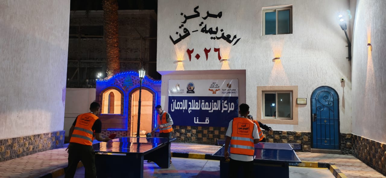 يحرص صندوق مكافحة وعلاج الإدمان والتعاطى على تنفيذ الانشطة الترفيهية للمتعافين من الإدمان داخل مراكز العزيمة التابعة للصندوق خلال أيام عيد الفطر المبارك 2026 ،وذلك فى إطار الحرص على خلق جو أسرى للمتعافين ،ممن تم حجزهم كحماية فى الأعياد والمناسبات كونها من الأوقات عالية الخطورة للانتكاسة، حيث يتم تأجيل خروجهم لحين انتهاء أيام العيد لحمايتهم لمجرد التفكير فى العودة للإدمان، كما يتم أيضا تنظيم مسابقات ثقافية وترفيهية داخل مراكز العزيمة لاسيما خلال الأعياد والمناسبات ،كذلك العمل على تنمية مواهب المتعافين مثل الموسيقى والرسم وتنفيذ العديد من الحرف اليدوية على شكل تحف فنية ،حيث تتضمن مراكز العزيمة ورش تدريب مهني وصالات ألعاب رياضية وملعب كرة قدم "خماسي" وتأهيل بدنى وتنس طاولة وبلياردو وصالة جيم ومطعم ومسرح وقاعة موسيقى ، وقاعة كمبيوتر ".
